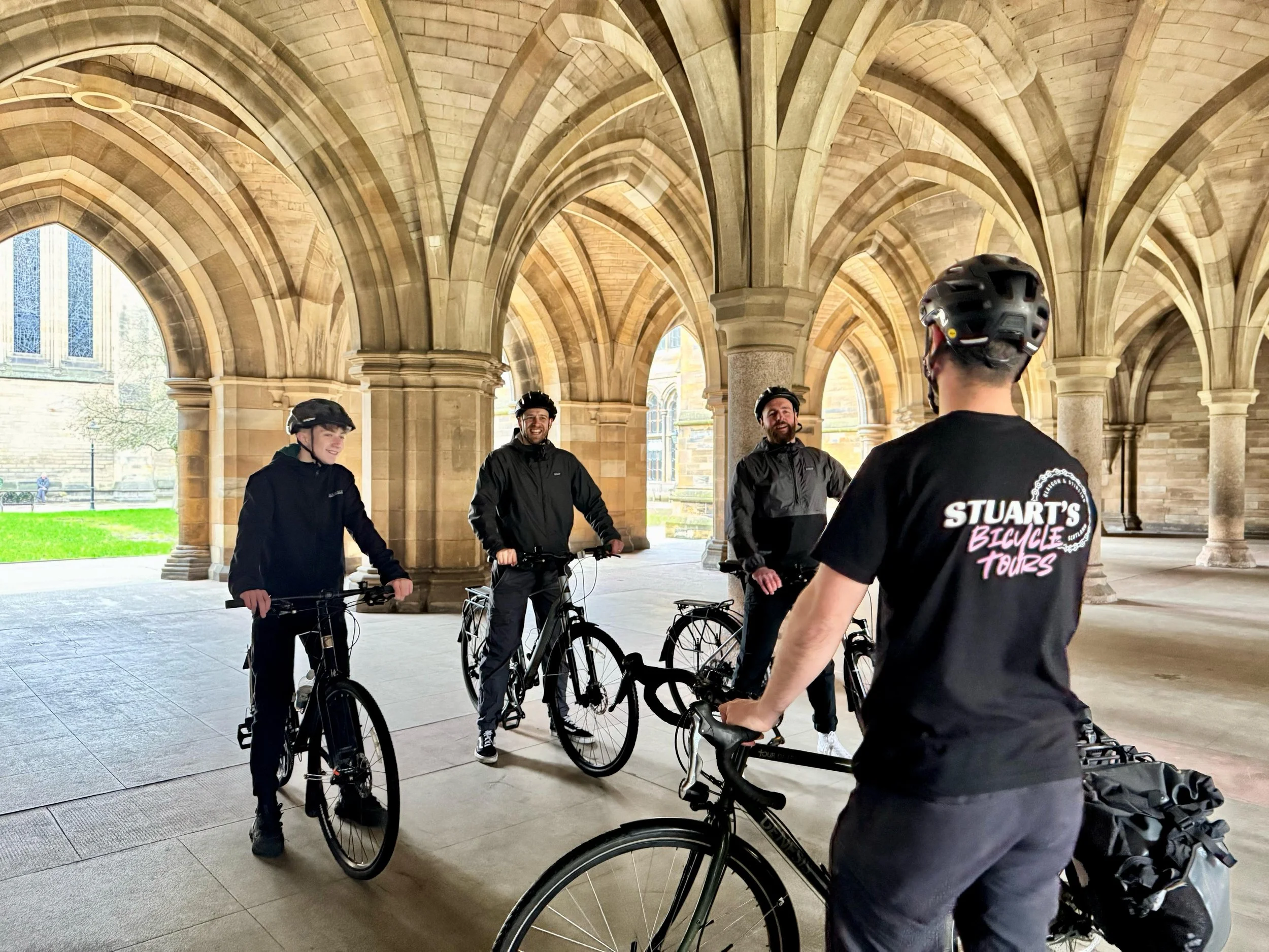 I have curated the route to be as easy as it can be, but Glasgow is a city built on a few hills. There will be some inclines to tackle but if you are in any doubt, you can choose an E Bike and forgo any challenges. Our pace will always be relaxed and in 6 years I have never left anyone behind! Cycling is relative, if you would like my advice, get in touch.